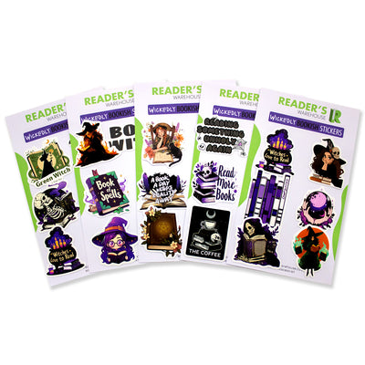 Assorted Talk Bookish To Me Stickers with book-themed quotes and colorful designs from Readers Warehouse