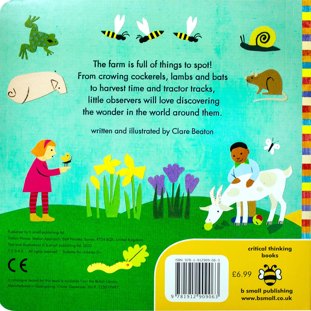 The farm is full of things to spot. From crowing cockerels, lambs and bats to harvest time and tractor tracks, little observers will love discovering the wonder in the world around them.
